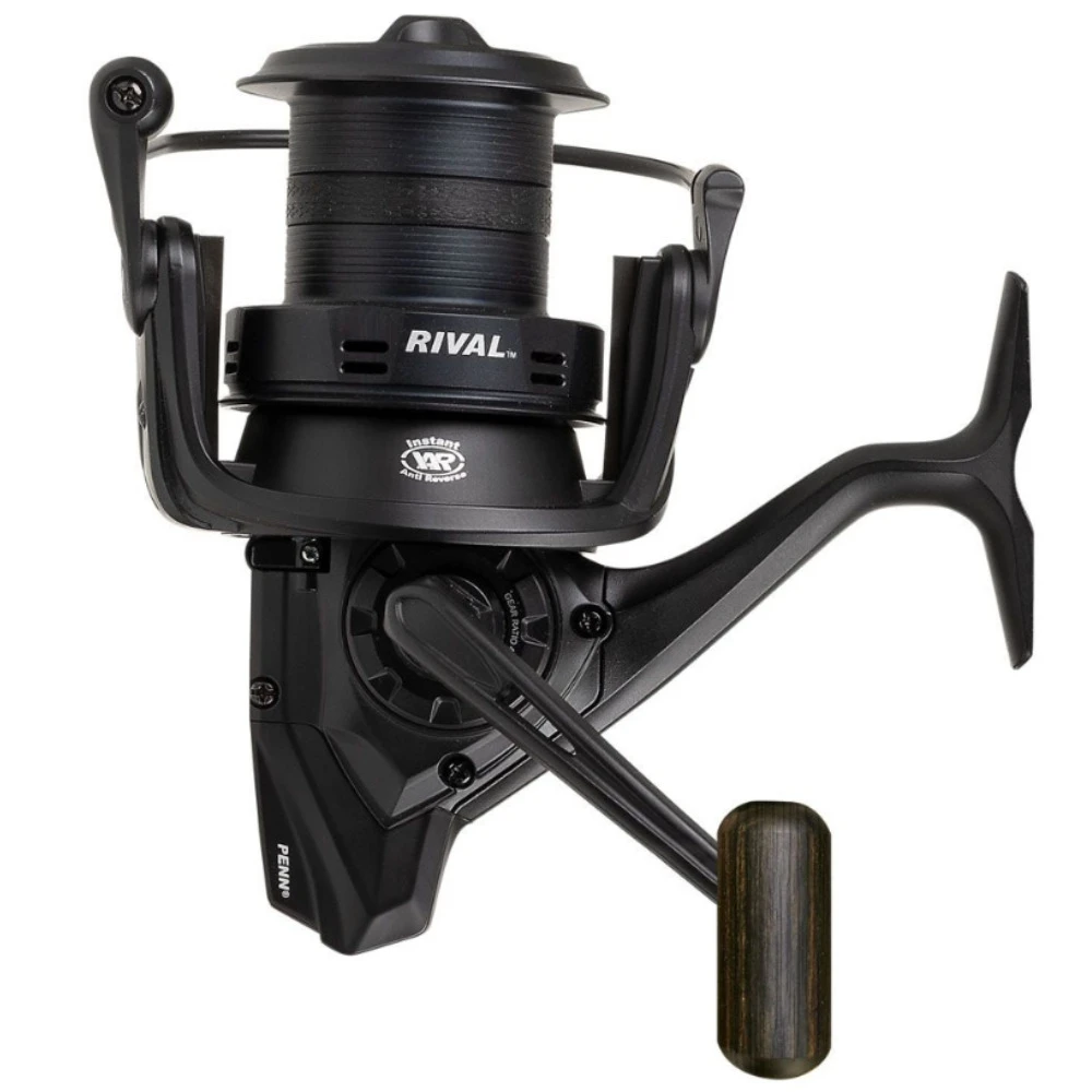 The PENN Rival was engineered to be a versatile all-round longcast reel at an affordable price. The 5 shielded ball bearing system, including an instant-anti reverse bearing, are ensuring you of a perfectly smooth operation, even under presure. The graphite body in combination with the machined, braid ready, aluminum spool is resulting in a strong yet lightweight reel. The special foldable handle comes with a luxe rosewood handle knob. The PENN Rival comes in 3 different sizes: 6000, 7000 and 8000; so there is a Rival for every angler; carp, surf, feeder, etc. the choice is yours!