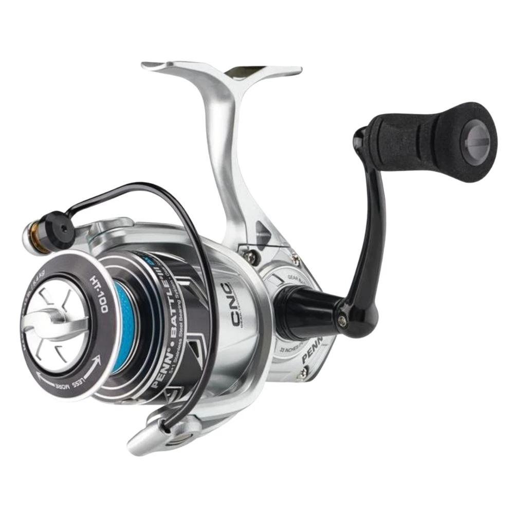 Penn Battle III DX Spinning Reels are built tough to withstand whatever the saltwater angler puts these reels through. The Battle III DX reels are more powerful than the previous Battle III spinning reels. Brass main gears are in every size along with an improved HT-100 drag system. Transfer more power through the gears to your big catch on the other end of the line with oversized EVA handle knobs.