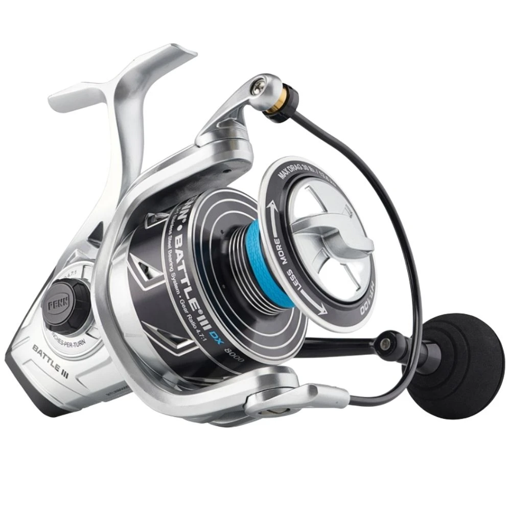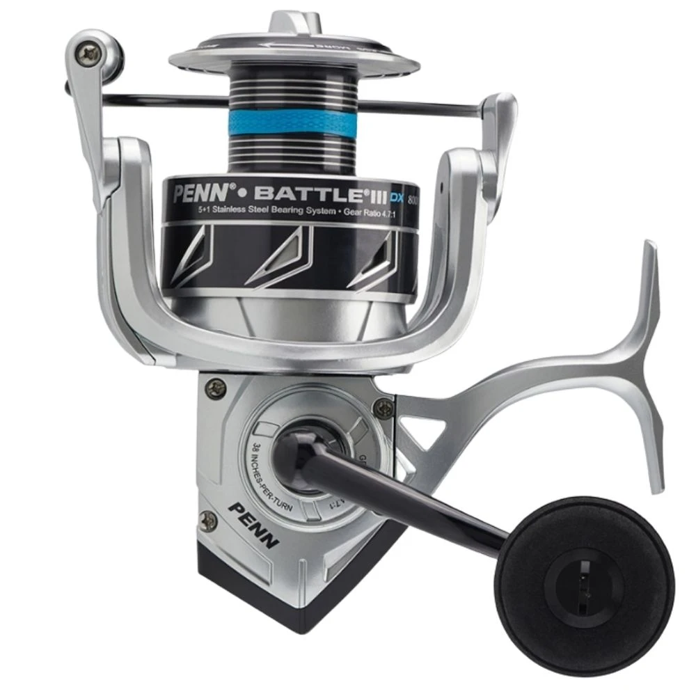 Penn Battle III DX Spinning Reels are built tough to withstand whatever the saltwater angler puts these reels through. The Battle III DX reels are more powerful than the previous Battle III spinning reels. Brass main gears are in every size along with an improved HT-100 drag system. Transfer more power through the gears to your big catch on the other end of the line with oversized EVA handle knobs.