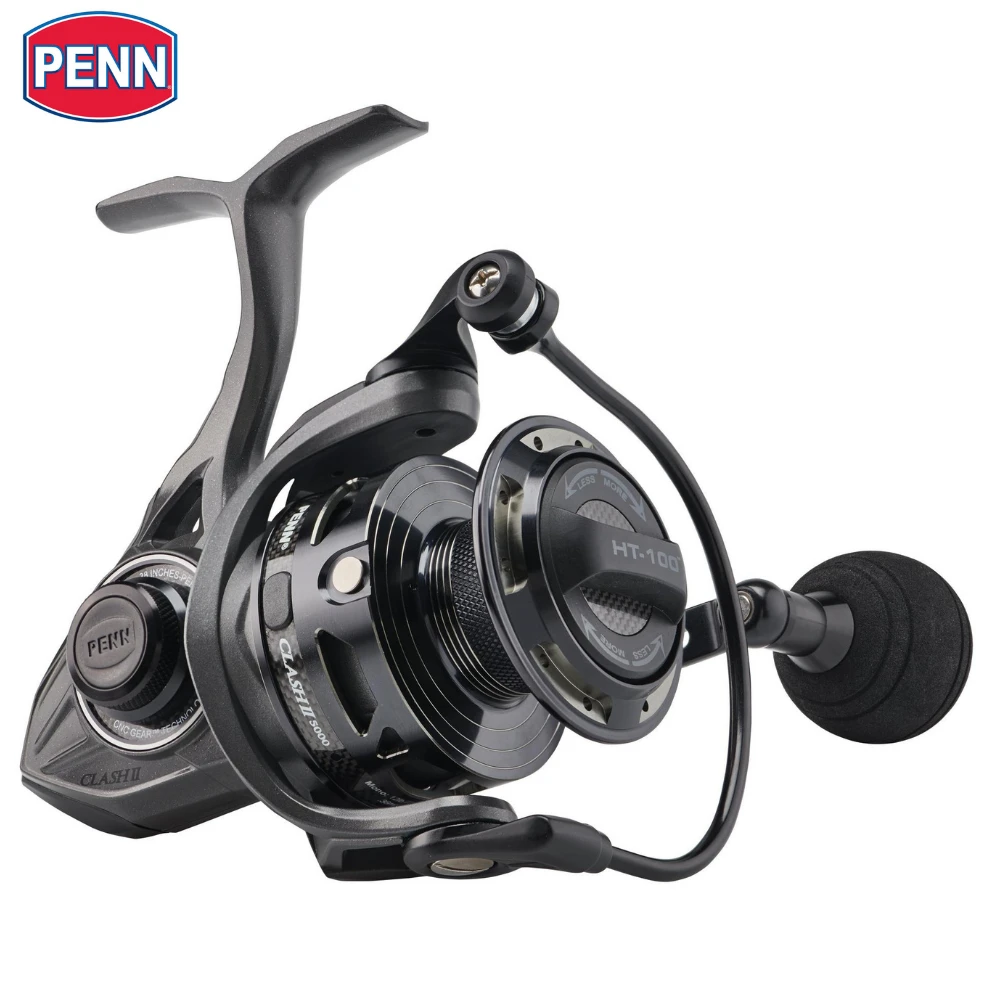 The PENN Clash II is the ultimate inshore reel. Featuring our proprietary CNC Gear Technology and HT-100 carbon fiber drag system, the Clash II can handle any inshore species you hook. The Hydrophobic Line Roller Bearing, along with the Clutch Armor System ensure protection to critical components in all weather conditions without sacrificing weight,while the Leveline Slow Oscillation System ensures perfect line lay, cast after cast. Available in sizes 1000-5000, the Clash II has the right size for any inshore application.